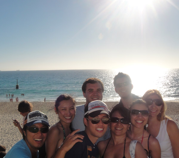 A gente foi pra Cottesloe de novo! Os brasileiros e o japonês Atsuo! Nesse dia a Transperth (Transporte Público) estava em greve! Fala sério, aqui também tem greve! ahahaha! Daí a gente demorou um tempão pra chegar lá, porque só alguns trens estavam operando! Mas valeu a pena!