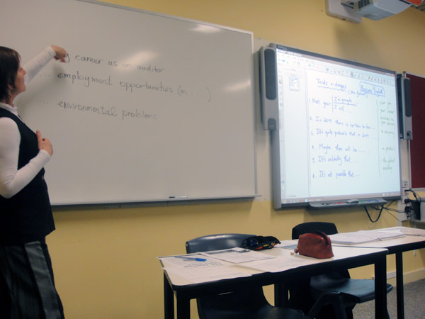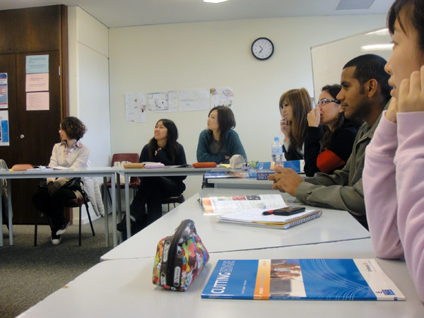 Andando rapidinho, consegui chegar a tempo! 8:15am estava lá para o meu teste de nivelamento e pra preencher alguns formulários! Toda 2ª feira chega alunos novos! Nesse dia, além de mim, chegaram: Yuri (Japão), Manlio (Colombia), Evelin (Colombia) e a Fanny (França). Pena que não tirei foto…!