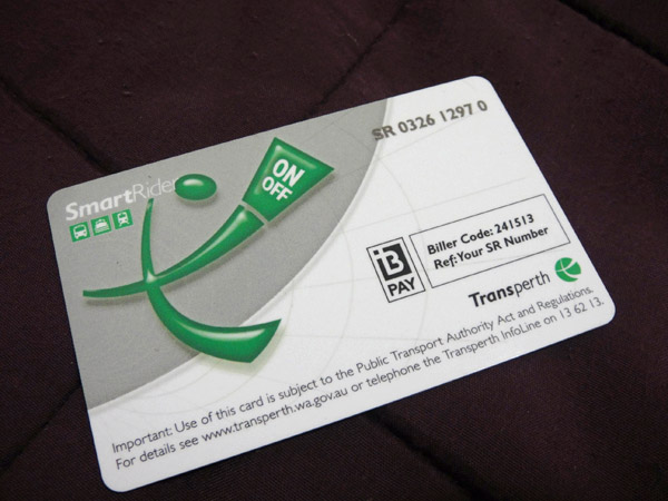 SMART RIDER • No 1º dia de aula já fiz meu cartão do transporte aqui! Precisei pagar A$5.00, daí você coloca quanto quiser de crédito! Qualquer dia faço um post sobre os transportes coletivos aqui! • www.transperth.wa.gov.au