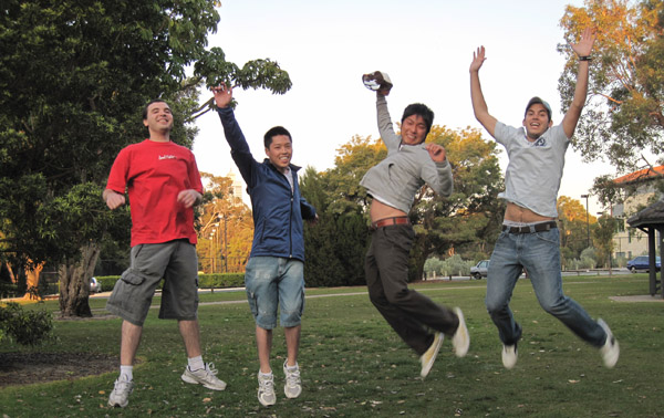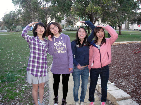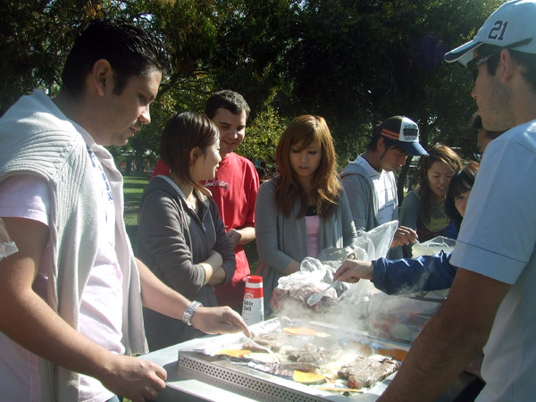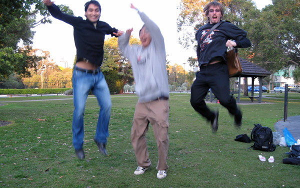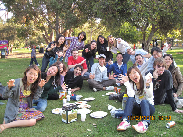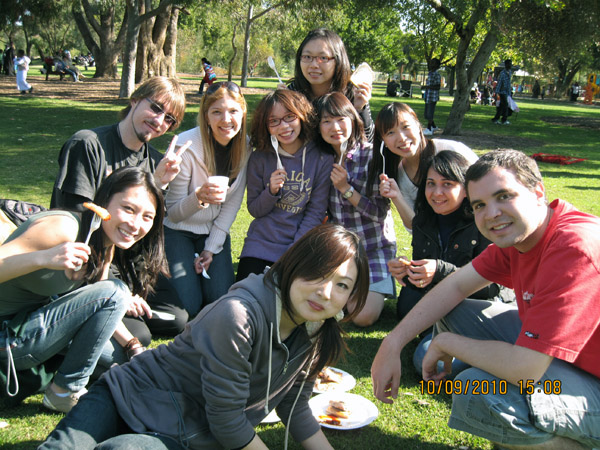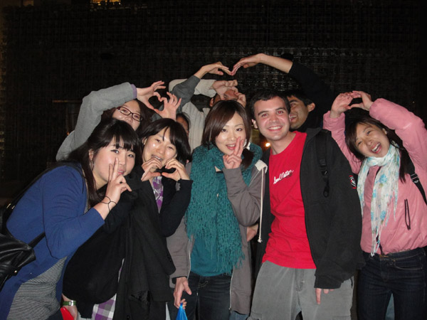 A carne estava gostosa! (Esse que está atrás de mim é o Cody, o único australiano daí! Se bem que ele é praticamente japonês pode dentro! O resto é brasileiro, taiwanês, coreano e japonês!)