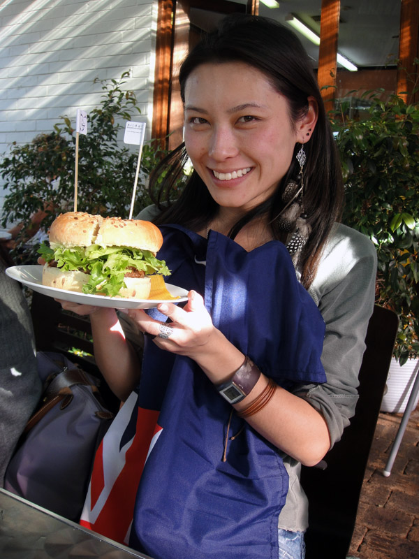 Depois da aula da tarde, a gente foi num restaurante experimentar!! Dizem que é bem saudável! Eu gostei bastante, mas eu comi em forma de hambúrguer… quero experimentar em forma de bife mesmo! ahaha! Pra sentir melhor o gosto!!
