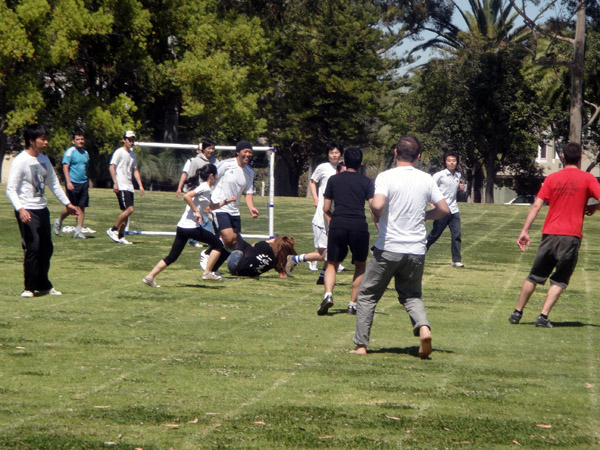 TIMÃO! Achei que o jogo fosse ser super de boa... misto! Mas só foram 2 meninas da nossa sala que aceitaram jogar: eu e a Ayumi!! ahaha! Ainda bem que o nosso goleiro Felipe é profissional! rs. NA FOTO: Felipe (Colombia), Ayumi (Japão), eu, Cédric (Suíça), Budhi (Indonésia) e Atsuo (Japão)! Faltou o Malio, Maurício e Shinnawat!