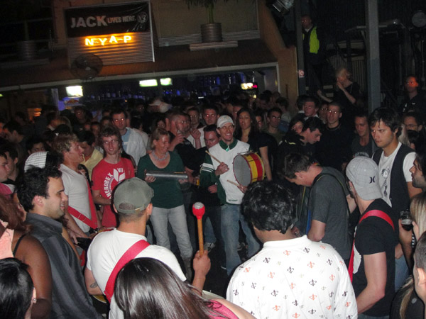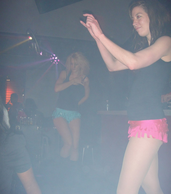 Espaço eletrônico! Sempre tem essas mulheres de micro-shorts dançando! É muito engraçado! Mas acabei de descobrir que isso não é nada! Conversei com minha prima, e ela disse que em Sydney ela ía numas baladas que molhavam a camiseta branca das mulheres! ahahaha! (prima, era segredo? KKKKKKK) Acho que em Perth nem tem isso, viu!