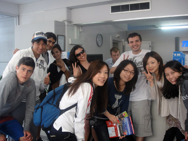 Fila para ir no banheiro! Tem tanto turista aqui na Austrália, que as vezes eu me sinto em algum país da Ásia...! rs A fila tava muito grande... Os meninos deram cobertura, e eu e a Ayumi usamos o banheiro masculino!