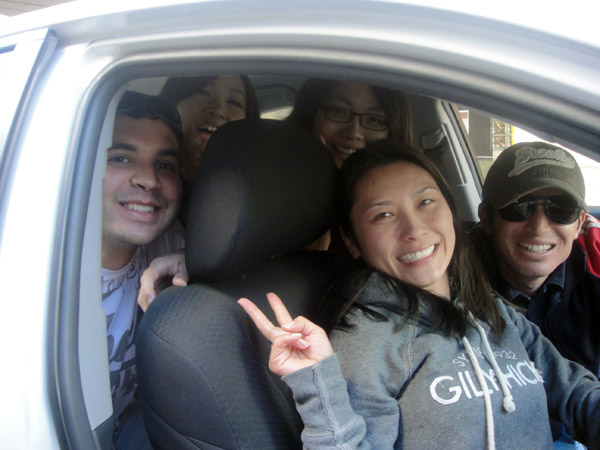 Depois daquele dia que eu e o Nicolás pesquisamos os preços pra alugar carro, a gente foi falar com o pessoal! Foi muito legal, porque no final deu 20 pessoas…!! 4 carros! Muito mais gente do que imaginamos! =D