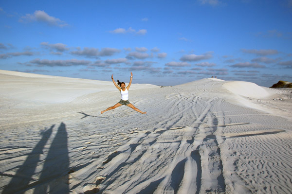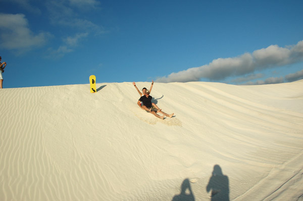 Sand Dunes • Lancelin • A areia tava tão fofa que eu afundei ao invés de descer com a prancha! ahaha Radical, hein...!