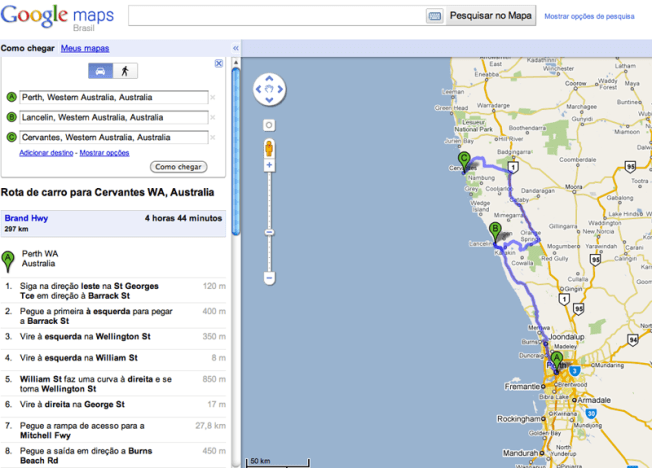 Nossa rota: Perth • Pinnacles (Cervantes) • Lancelin • Perth (O mais longe primeiro)