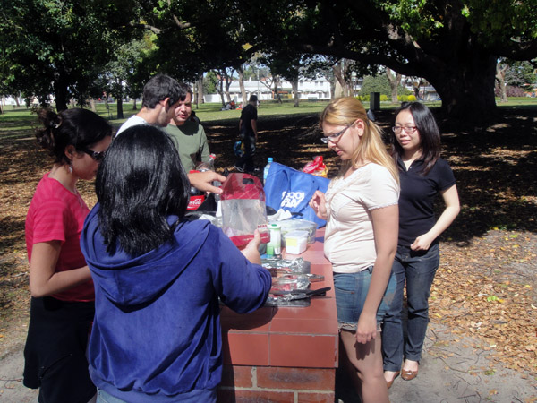 O feriado chegou (foi uma segunda-feira), e a Ka e o Bruno convidaram a gente pra fazer um xurras no Hyde Park! A Karina fez feijão…. ai meu Deus!! Estava seca pra comer feijão!!! Que delícia!! Aqui NÃO TEM o nosso tradicional feijão! Mas no Kakula’s a gente encontra o feijão preto! =D