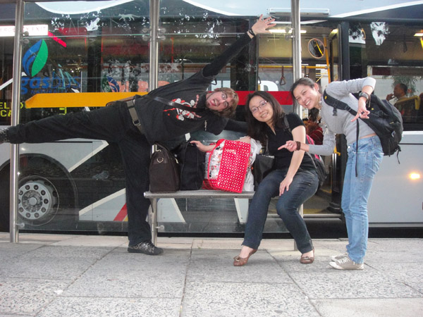 Cody (Australia), Vita (Taiwan) e eu, esperando o ônibus!