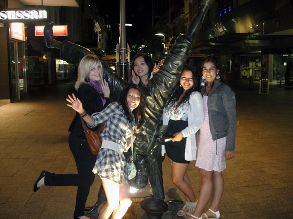 Indo pra Northbridge! Paradinha pra foto no calçadão: Marie, Vita, Francisca e Cindy