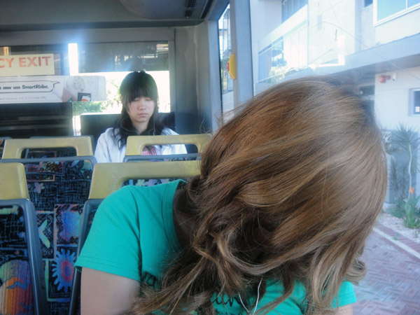 Não pego mais trem… agora vou de ônibus, nº25. Tem um ponto que fica 3 quadras de casa! =D A viagem é meio longa: cerca de 45 minutos, mas o ônibus para em frente a escola! Quando eu ia de trem, eu tinha que andar 15-20 minutos!