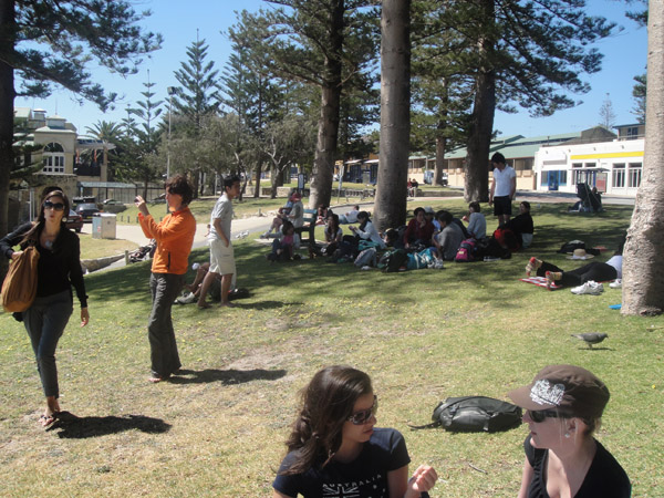 As aulas electivas rolam em torno de um ciclo de 5 semanas! Então quando acaba um ciclo, a escola promove alguma coisa pra relaxar! Acho que a última vez foi aquele cachorro-quente na faixa + quiz! Nesse ciclo, a gente não teve aula na 5ªF a tarde, e todos nós fomos pra Cottesloe na hora do almoço, e ficamos até a tardezinha!! Foi muito gostoso!! • Nossa gente.. pode falar: “Andréia, você precisa conhecer outras praias…” AauAHAUA!