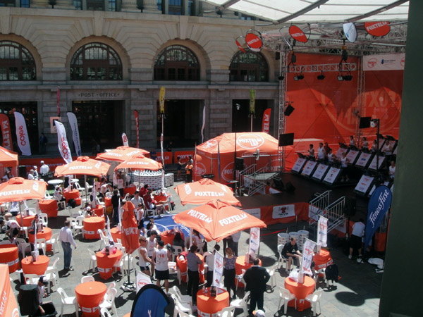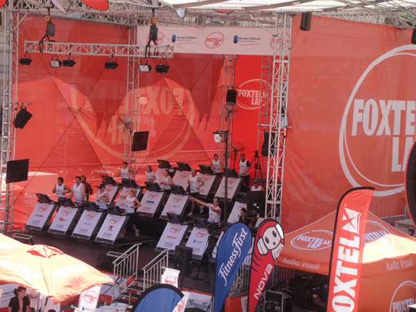 Nesse dia estava acontecendo um evento da Foxtel (canal por assinatura). Tinha um povo correndo no palco... não consegui entender o espírito da coisa..!