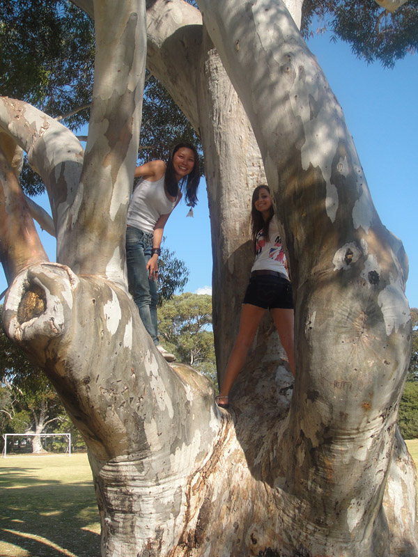 Eu e a Marie escalando a árvore que fica em frente a escola!