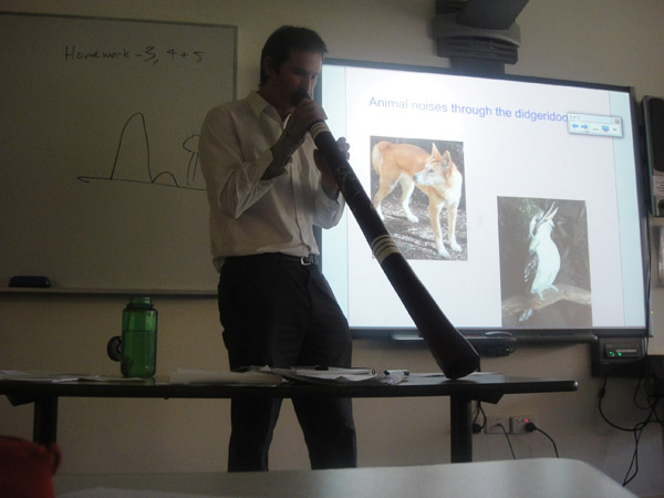 Teacher Mark tocando o típico "Didgeridoo"! O didgeridoo é um instrumento de sopro dos aborígenes australianos!