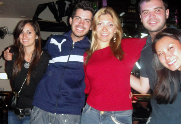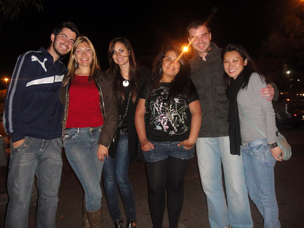 Não deu pra entrar no bar, mas tiramos uma foto com a Valéria! • Na foto: Bruno, Ka, Marie, Valéria, Ro e eu!