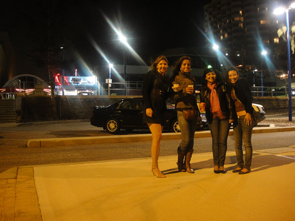 A noite fomos pra um bar em Scarborough! É.. esse dia foi uma prova que Perth é uma das cidades que mais venta no mundo! • Karina, Sandra, Rosângela e eu!
