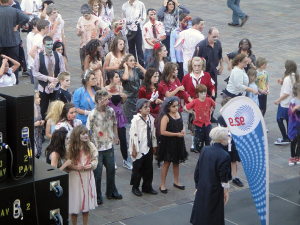 Estava andando no centro, quando eu vejo um monte de gente vestido de zumbi e dançando Thriller, do Michael Jackson! AhaUAHAU! Como eu disse no post anterior. Aqui você piscou, perdeu alguma coisa!