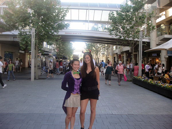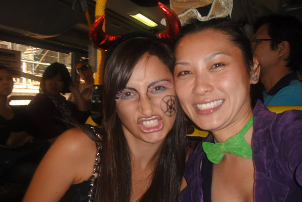 Como eu e a Marie estávamos com vergonha de ir andando pro centro, em plena luz do dia, fantasiadas, marcamos de pegar o Red Cat! ahaha! Mas foi mico do mesmo jeito!
