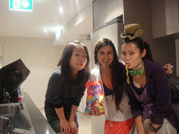 No dia seguinte, tivemos nosso Halloween no salão de festas da Marie e da Vita! Marcamos de nos encontrar no final da tarde, lá no centro pra comprar comida pro BBQ!