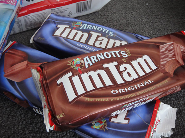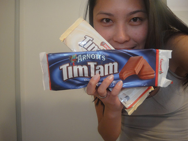 Quando eu estava na homestay, o Stirling me ensinou como comer o Tim Tam com leite!! Nossa… fala sério!! É muito bom!!! Eu vou ensinar aqui, tá? ahaha! A Thamara disse que é nojento, mas o gosto vale a pena! =D