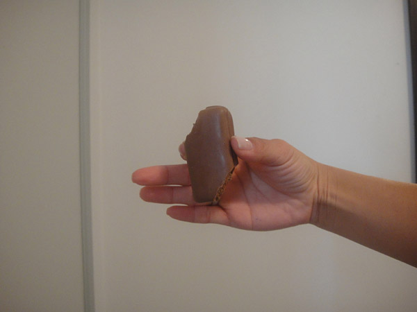 Gente… tô viciada nesse chocolate-biscoito!! AHaUAHu! Já provei todos os sabores que tem…! Mas pra falar a verdade, eu prefiro o azul (double-coat)!!
