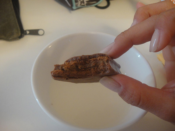 5. Agora é só tomar o leite, usando o TimTam como canudo!