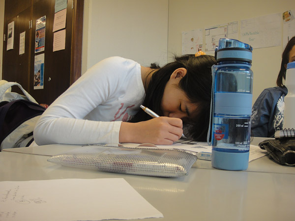 Começando com a galera dormindo na aula da tarde.. gente.. é bravo mesmo ficar acordado depois do almoço, ainda mais quando o teacher é o John! ahaha!! Por isso tiro fotos! Me mantem acordada! ahaha • Vita e Huang!