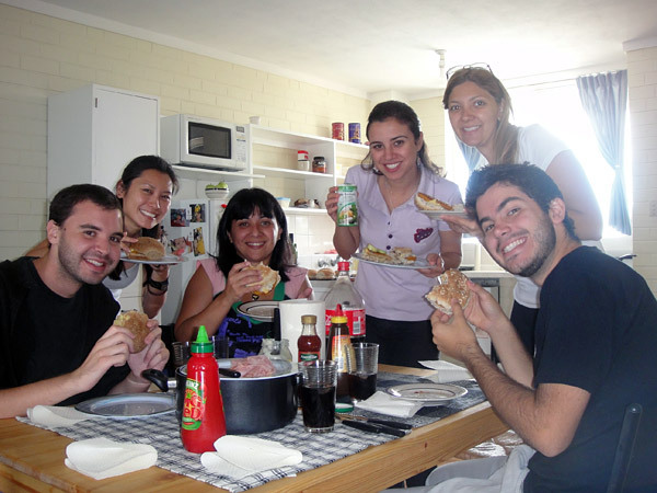 Tadinho do casal.. já deve tá de saco cheio de ver nossa cara! Mas é que lá a gente tem mais liberdade! =D A Rosângela morava em homestay (falando no passado, porque ela já voltou pro Brasil). Eu, Priscilla e Roberto dividimos apartamento com outras pessoas… daí fica mais complicado!