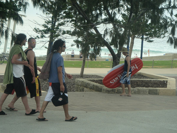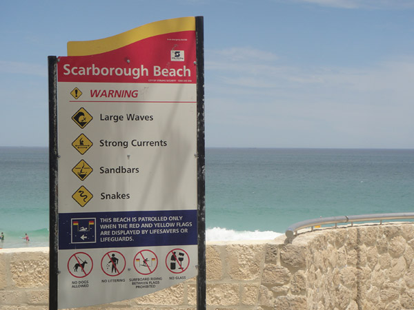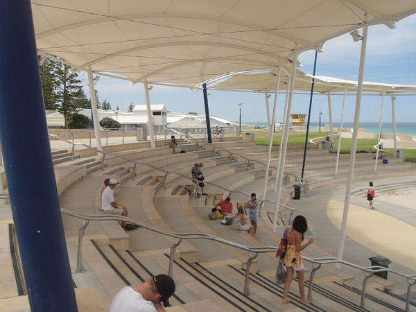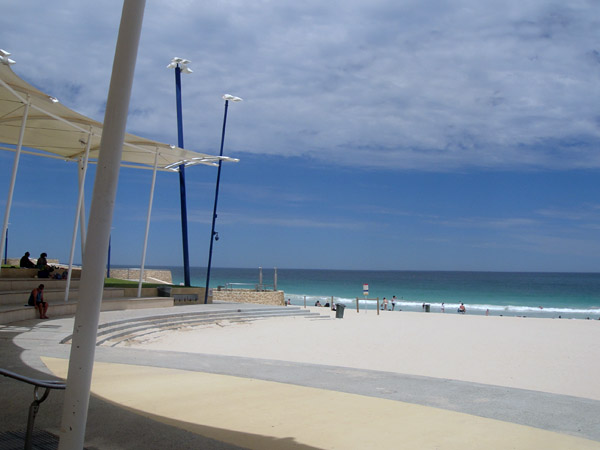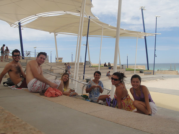 Praia cheia! Essa é uma das praias mais conhecidas aqui, depois de Cottesloe! Tá vendo que ninguém tem guarda-sol?