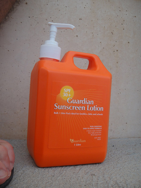 Protetor solar 1L! AHAUAHAU! Aqui é normal você encontrar esse tamanho no supermercado! O único problema é o fator de proteção... o maior que a gente acha é 30!