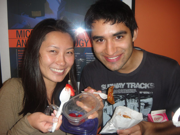 O que comer na hora do intervalo (10am)? Morangos ou batata frita e engordurada? AHauaHAUA! • O Nicolás trazia TODO DIA pro almoço: noodles e bife. Ele dizia que não sabia cozinhar.. e tudo começou pegar no pé dele.. que ele precisava comer legumes e tal.. dar uma variada, porque não fazia bem pra saúde dele! Agora ele começou dar os primeiros passos na cozinha! =D