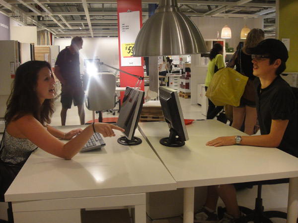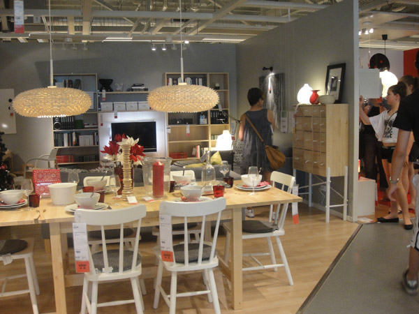O IKEA é uma loja de origem sueca, especializada em venda de imóveis doméstico de baixo custo! Na verdade, vende de tudo!! É o paraíso!  Ah se eu morasse aqui… queria montar minha casa inteira lá! Lembra muito a Tok Stok, mas tem coisas realmente baratas!! A loja é ENORME! E só existe um caminho: você precisa percorrer a loja toda, pra chegar ao caixa!