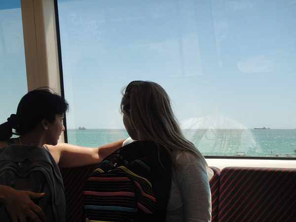 Quando o ferry chegou, foi muito comédia! A gente saiu correndo, gritando por nossas toalhas!! Todo mundo que tava no barquinho riu da nossa situação!