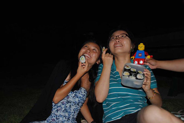 Nosso piquenique estava tudo lindo e maravilhoso, quando de repente... algo estranho na nossa toalha.. mas estava escuro e não dava pra enxergar.. Peguei o celular pra iluminar e... era água!!! E aqueles jatos de água começaram a vir de todos os lados e crescer! AhauaHAU!