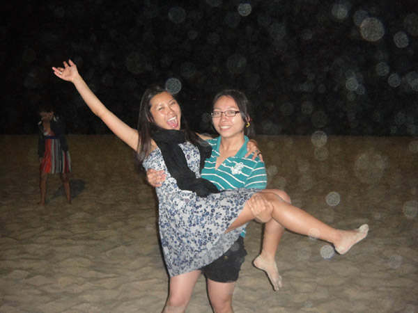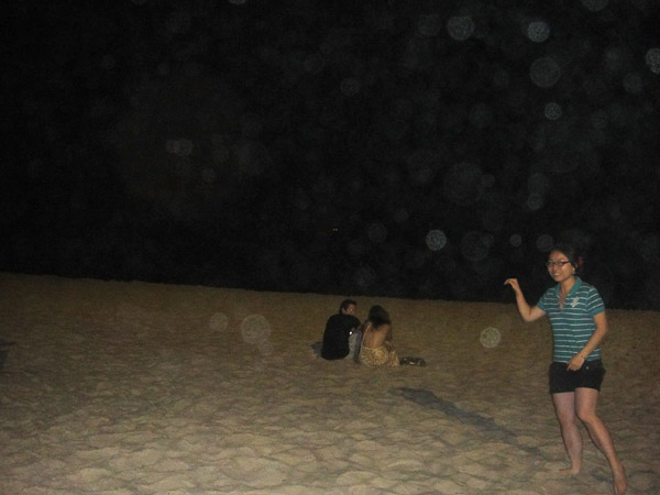 Chegando na estação de trem, a Karina percebeu que o Bruno tinha jogado fora a sacola com o cartão de passes dela… O Bruno voltou pra praia pra buscar. A Karina e o Rodrigo ficaram esperando por ele na estação mesmo. Mas o trem seguinte, só iria 1 hora e meia depois!! Bom, a gente pegou o primeiro trem mesmo! Chegando no centro, ainda tinha que andar até em casa!! Morrendo de frio!! Mas foi muito divertido!! Foi a primeira vez que passei a noite de Natal na praia!