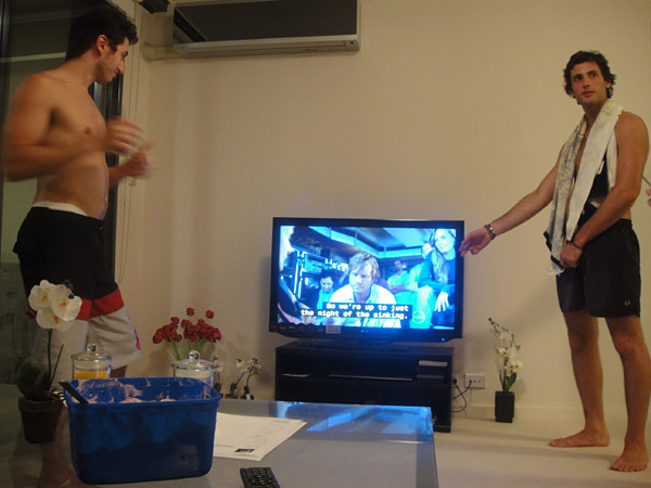 Depois de tudo isso, deu fome de novo! E a gente foi pro apartamento da Vita tomar sorvete! Eita vida boa! AHaUHAU! Mas antes, ela foi checar se o pessoal da casa permitiria (é... é tenso a coisa lá!). Ficamos no corredor, em silêncio, esperando a Vita voltar! AHauAHAU!
