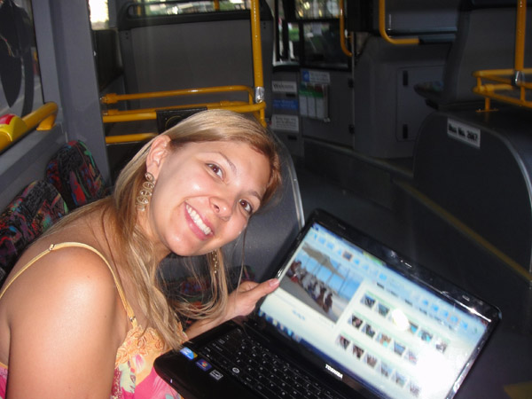 Como tinha que esperar uma hora lá, relaxamos e começamos conversar… Acreditam que perdemos o busão? AhauAhAU! E era só a cada uma hora! Como a gente tinha que ir logo pra fazer o vídeo pra Pri, resolvemos andar…. Que tragédia… Quase morri! Meu pé estava queimando só de andar umas 6 quadras… Tivemos que pegar um táxi!! AHaUAHAU!