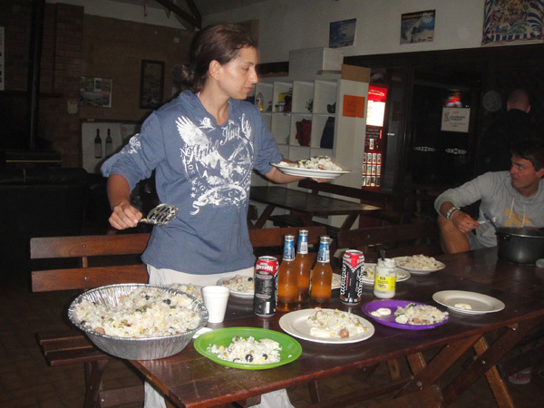 De noite, nossa chef Valentinha preparou... hum... não lembro o nome! ahahah! Era engraçado, porque a gente tava morrendo de fome, e tentava dar uma beliscada.. Mas ela não deixava!
