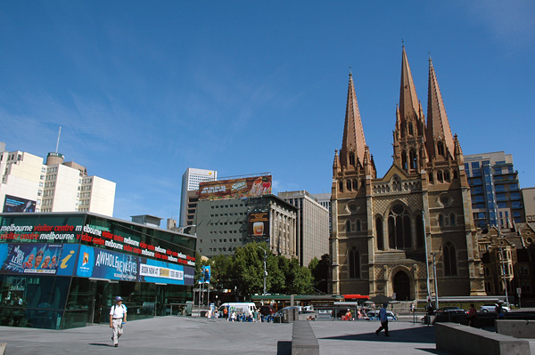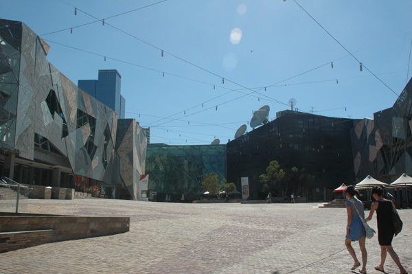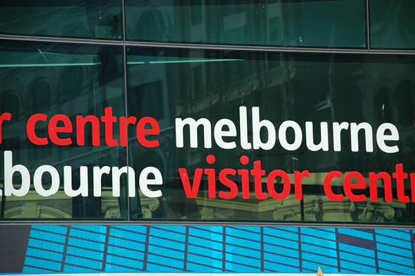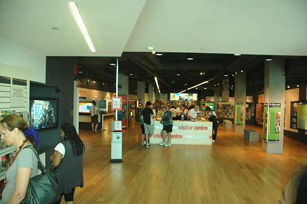 E finalmente chegamos ao centrão de Melbourne: a Federation Square! Lá tinha a central de informações para turistas!