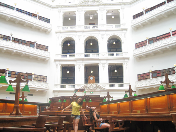 Essa biblioteca é gigante! Tem galeria de arte, espaço pra exposição... depois de andar, subir escada, pegar elevador..