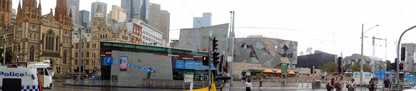De volta ao centro, passada obrigatória no Federation Square! • Foto panorâmica (pena que aqui fica pequeno!)