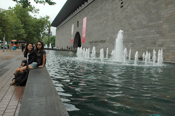 Depois de tanto andar, pegamos busão! A gente tinha desistido de ir no National Gallery of Victoria, porque não tínhamos encontrado no mapa! e não é que parados no congestionamento, dentro do busão... a gente tava em frente a galeria? Muita sorte, né? Descemos na hora! ahaha!
