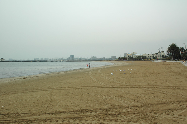 St. Kilda Beach. É... a praia de Melbourne deixa bastante a desejar! HAUAAHAU! E digamos que o tempo nem contribuiu!