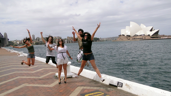 Chegamos em Harbour Bridge!! • Vita, eu, Anderson, Dalila e Aline!