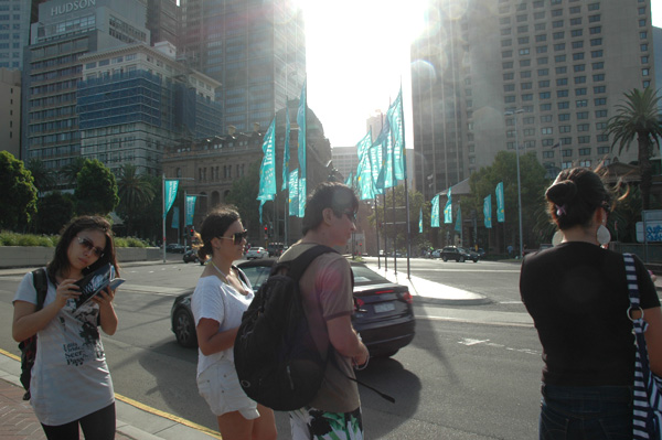 Primeiro dia (de verdade) em Sydney! =D A gente tinha combinado de sair lá pelas 8h… Mas só o Anderson conseguiu acordar.. a gente dormiu um pouco mais! eheheh Saímos a pé pra conhecer melhor a cidade! Fomos em direção a Darling Harbour!
