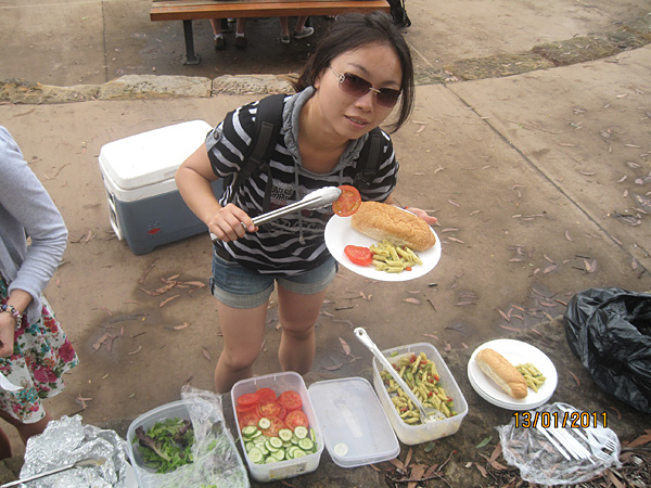 Nossa.. pra ir embora foi uma tristeza… De noite na Australia, geralmente é frio. E aquele dia tava muito frio, e ventando forte!! E a gente tava molhado… e longe do hostel! O jeito foi pegar um taxi. Mas quem aceitaria levar um bando de gente molhada dentro do carro? Bom, ficamos na rua, e alguns taxis não pararam.. óbvio! ahaha! Mas por um milagre, pra salvar nossas vidas (eu tava tremendo!), um taxi parou e levou a gente! Pra falar a verdade, acho que o taxista não percebeu… coitado!