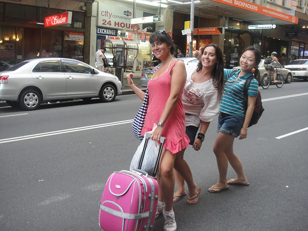 Hora de ir embora! Só a Aline ía ficar mais tempo em Sydney! • Meninas tentando pegar um taxi! Como a gente ia racharem 3, compensou pegar taxi!! =)