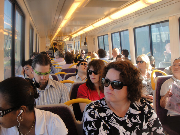 No trem: encaramos 1 hora de trem pra chegar em Brisbane! Tempo de sobra pra dormir! ehehe! Olha aqueles dois ali, com a boca aberta! • Eu não sabia, mas muiiita gente mora em Gold Coast e trabalha em Brisbane! E como o trem realmente funciona lá, essa distância não é um grande problema!