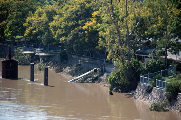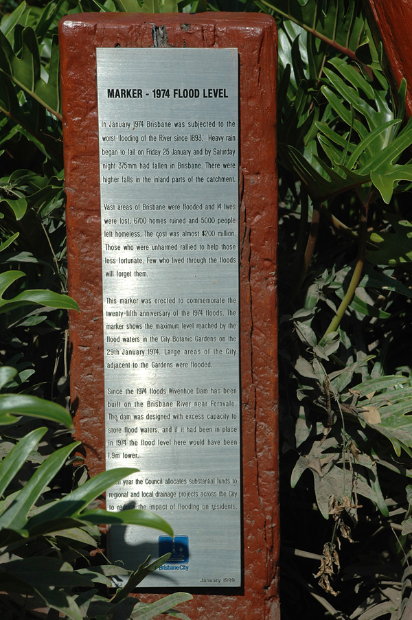 Andando por Brisbane, achamos esse marco. Não sabia, mas em 1974 houve uma enchente que marcou a história de Brisbane.
